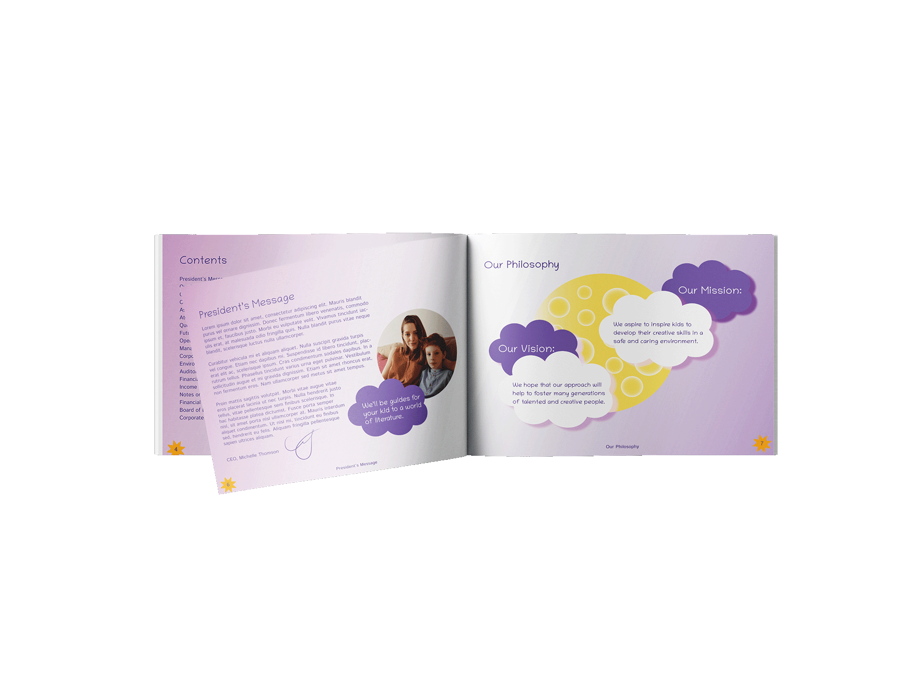 Mission Statement: We aspire to inspire kids to develop their creative skills in a safe and caring environment. Vision Statement: We hope that our approach will help to foster many generations of talented and creative people. Audience: Adults (both genders, 35-45years old), their kids (5-12 years old)