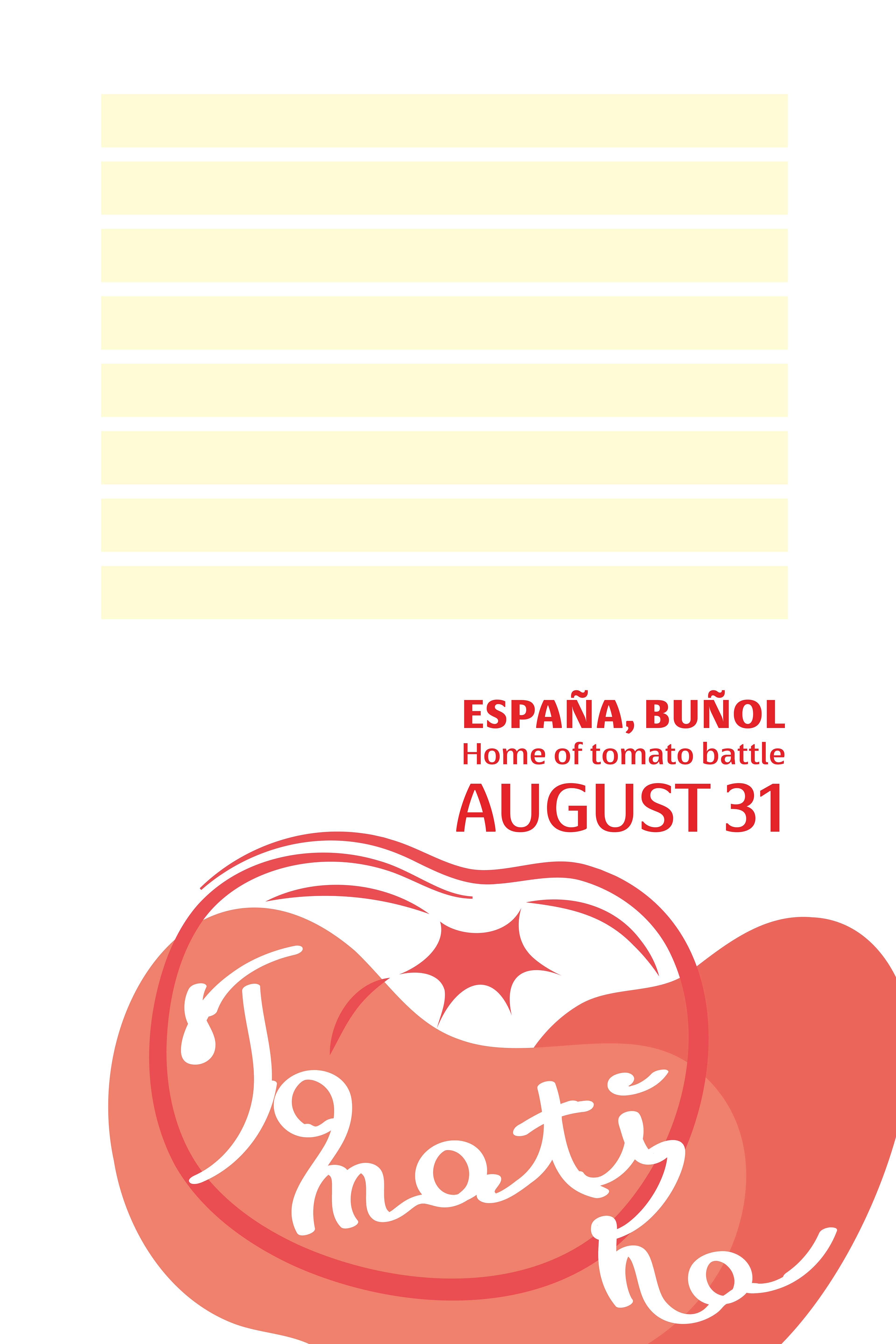La Tomatina festival takes its place in the city of Buñol in Spain. I am personally attached to Spain as I used to live in this beautiful country in my childhood. During summer vacations in Barcelona, I was inspired by the vivid and bright culture of this region. For this project, I decided to use fun illustrative approach, created some minimalist illustrations and my own type for the festival title.